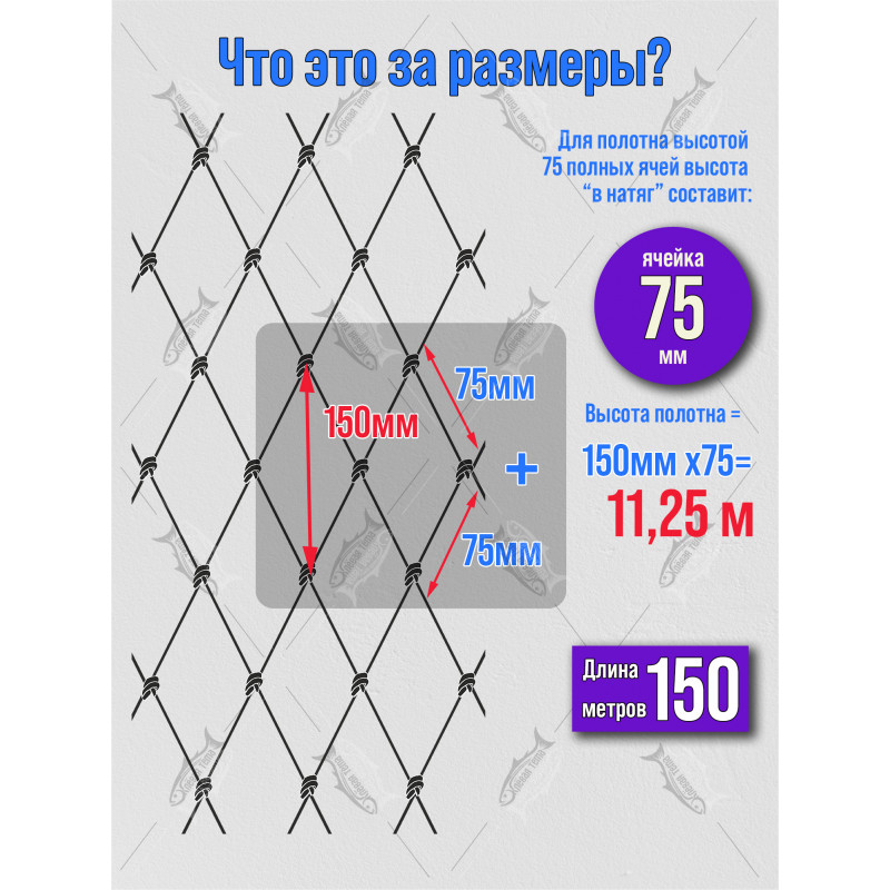 Высота 75 ячеек: Позволяет создавать сети и снасти с достаточной рабочей высотой.