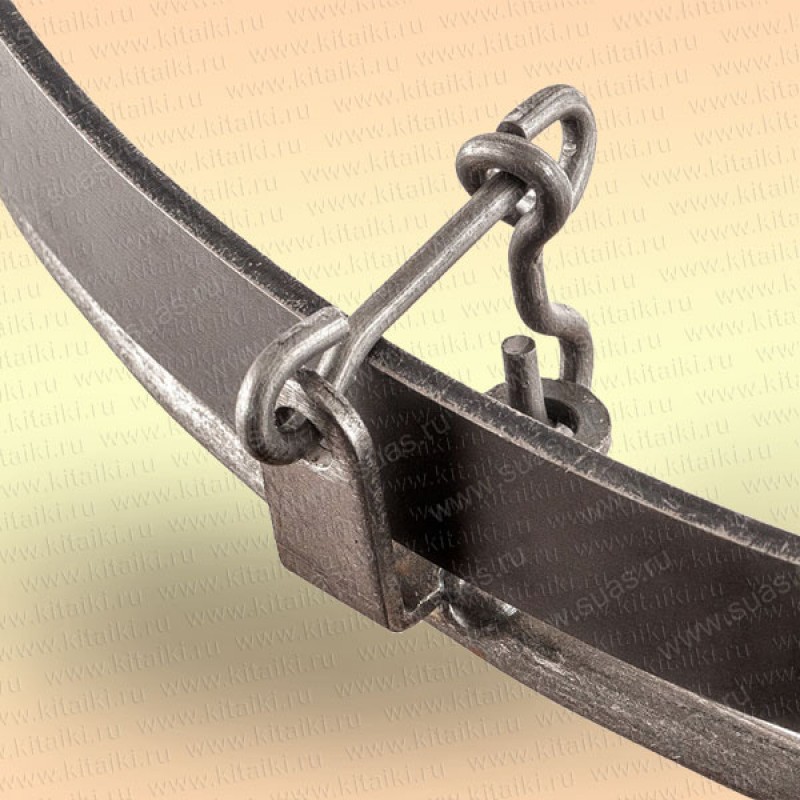 - Одной рукой сжать дугу и основание, другой завести предохранительный крючок между стойками фиксатора.