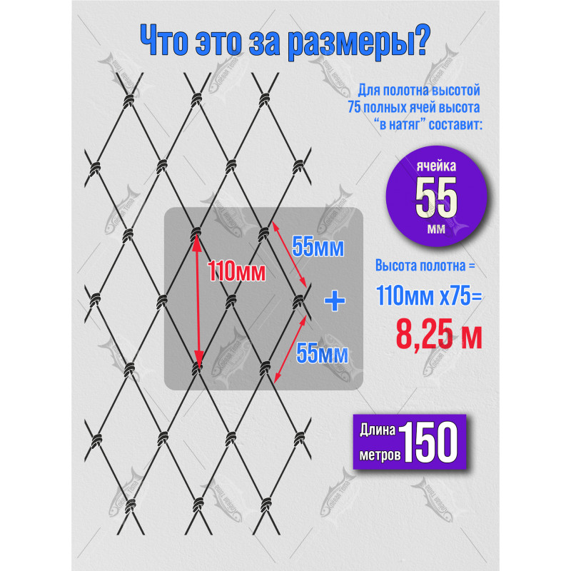 Сетеполотно ЖЕЛТОЕ леска 0,30 мм, высота 75 ячей, длина 150 м, ячея 55 мм